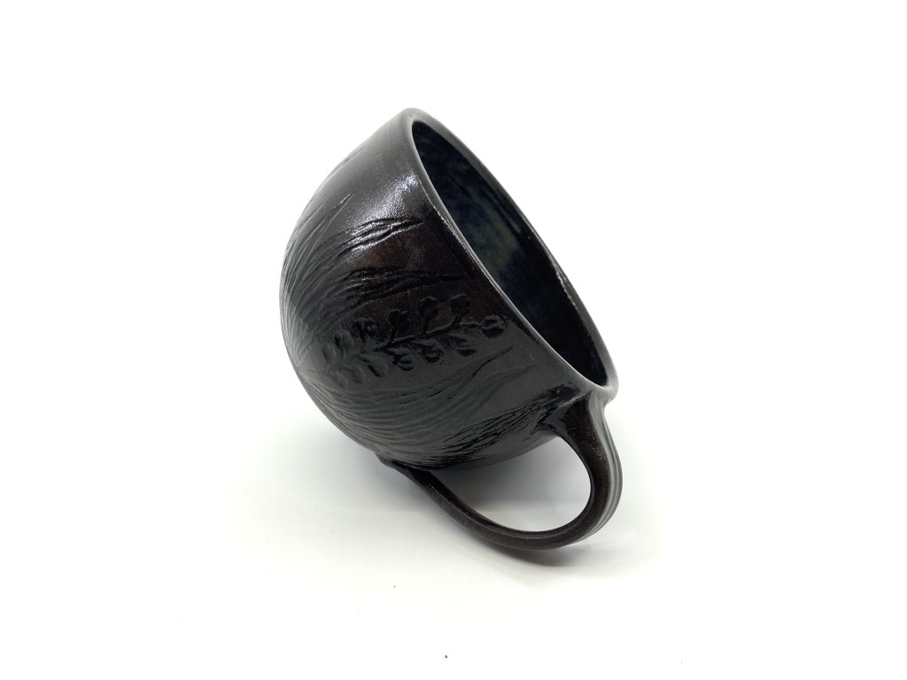 Hrnek má objem cca 350ml, je z kameniny pálený na cca 1230 stupňů v elektrické peci. Je vhodný i pro mytí v myčce. Černá / tmavě hnědá kamenina německé výroby.